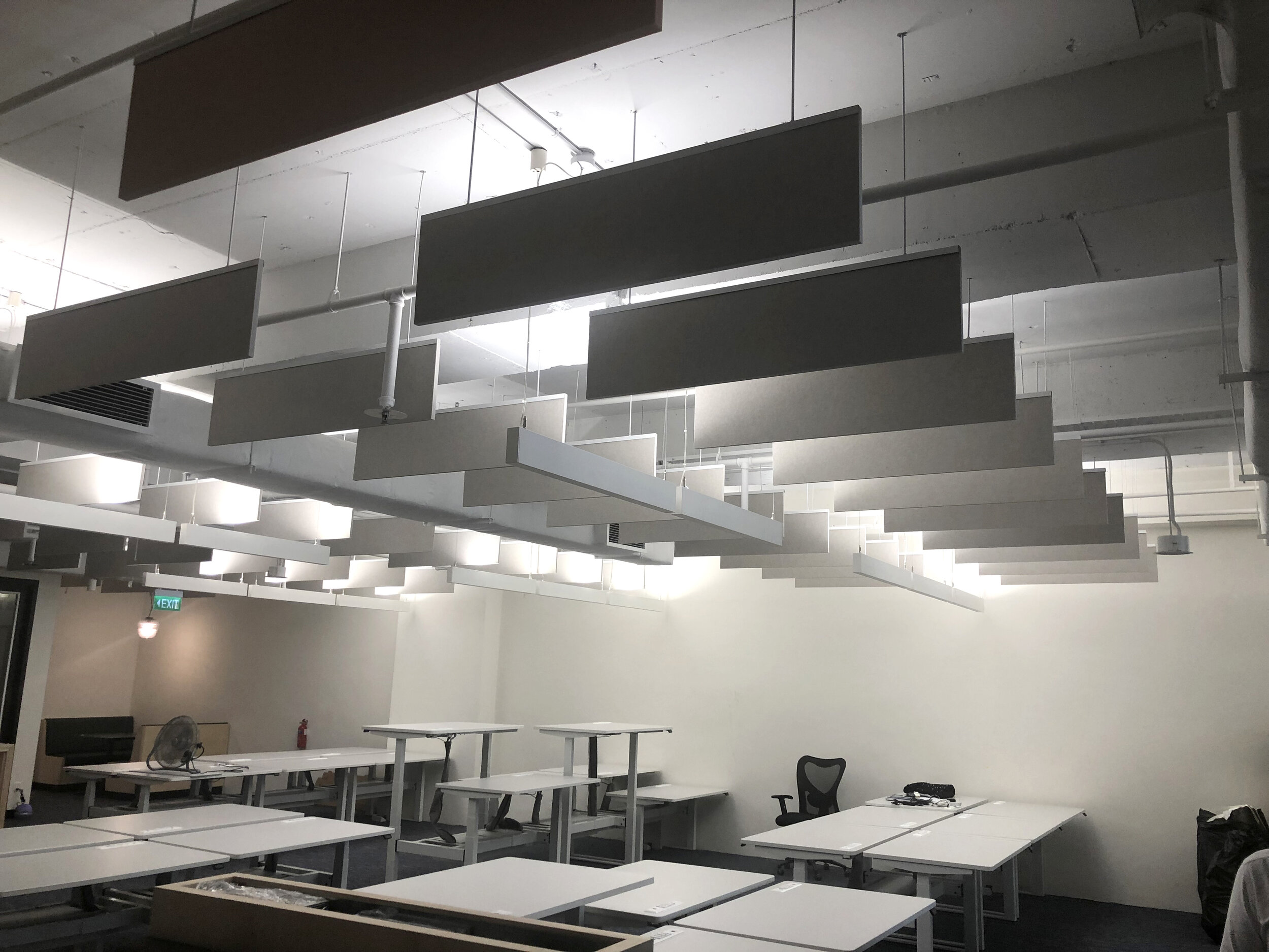 Possuem uma ótima aplicabilidade e são muito bons porque não interferem no design do ambiente, os baffles podem ser projetados de acordo com o layout do ambiente, com colorações escolhidas pelo cliente.