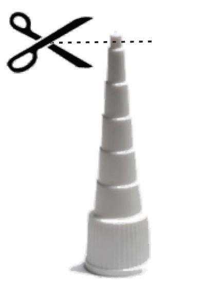 Abra a bisnaga de cola. Use o verso da própria tampa para fazer o furo na bisnaga e rosqueie nela o bico dosador.
