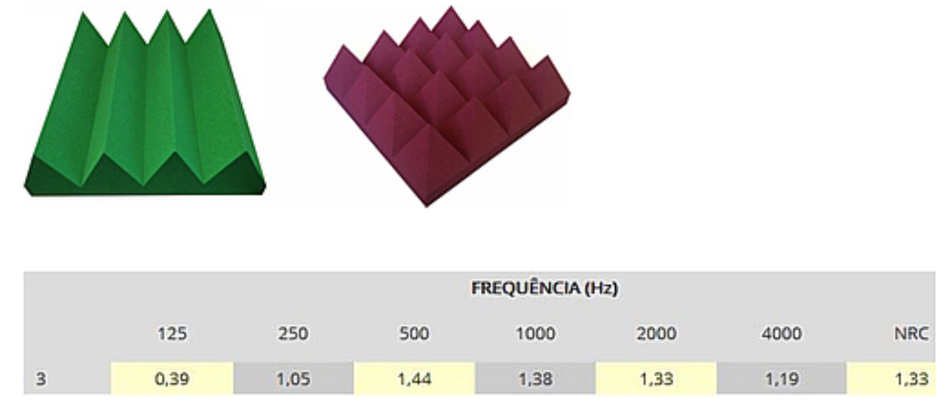 – Alto coeficiente de absorção sonora com reforço em baixas frequências.