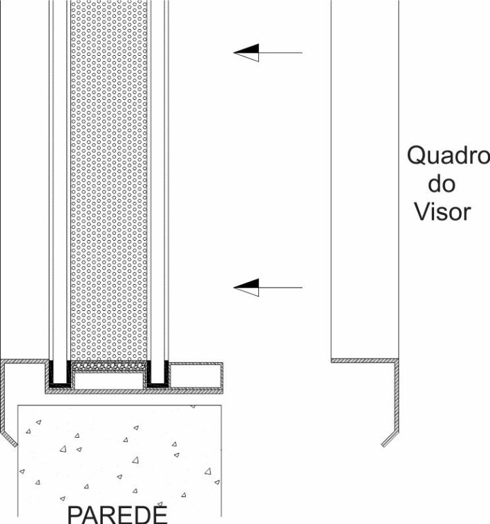 O quadro de aço que envolve o visor vai dividido em 2 partes. A primeira deve ser fixada com cimento no vão de instalação de um lado da parede. A segunda parte (Quadro do visor) deve ser acoplada a estrutura do outro lado da parede.