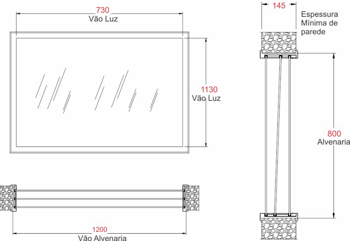 A parede deverá ter uma espessura mínima de 145mm para instalar esse Visor Acustico.