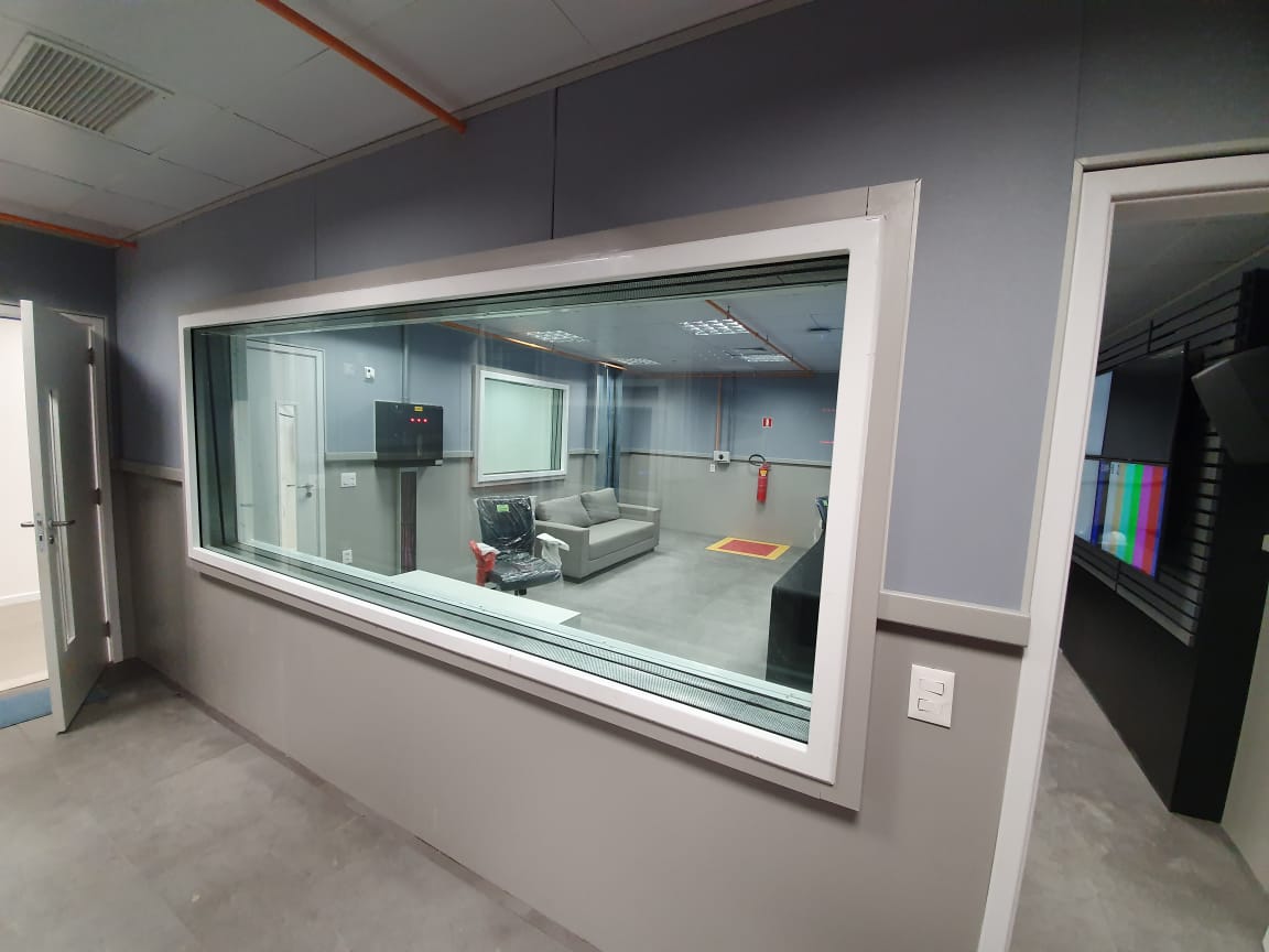 Com excelente Isolamento acústico, o Visor Acústico é uma parede isolante de vidro amplamente usada em estúdios de gravação de áudio ou vídeo, salas de reuniões ou locais que necessitem de visualização do andamento de serviços ou procedimentos, possibilitando a comunicação visual entre os ambientes sem interferência de barulho.